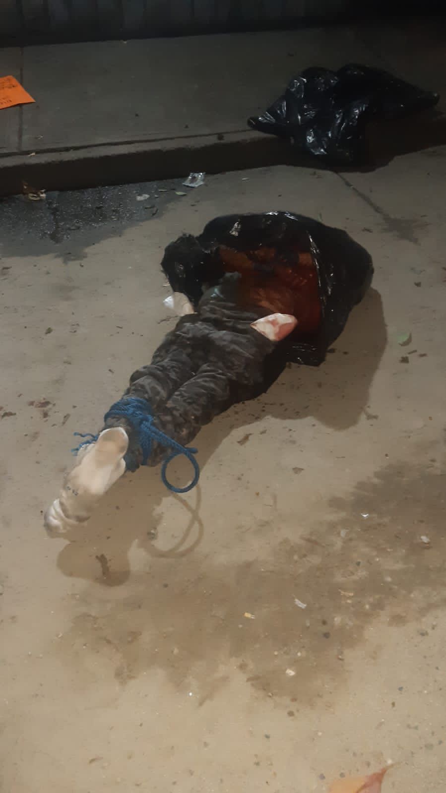 Los elementos policiales encontraron el cadáver decapitado envuelto con bolsas negras de plástico y la cabeza cercenada de la víctima a un lado de este.