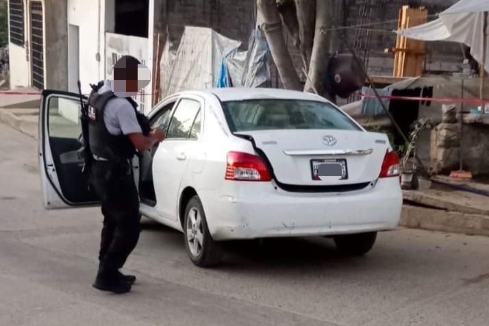 De manera inmediata, elementos de la Policía Estatal, Ministerial y Guardia Nacional arribaron al lugar y localizaron un vehículo de la marca Toyota, tipo Yaris de color blanco con la cajuela abierta y en su interior un hombre sin vida.