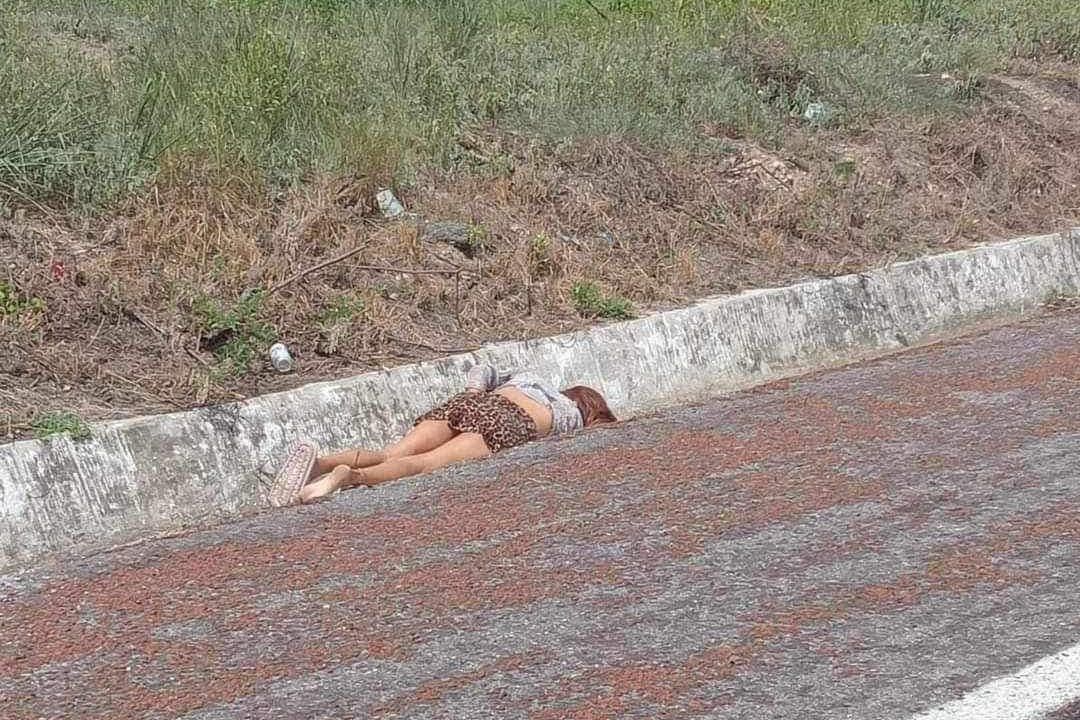 La mujer de cabello castaño vestía falda de color café, blusa blanca con estampados en tono negro y sandalias moradas y esta su cuerpo depositado en la cuneta aún costado de la vía.