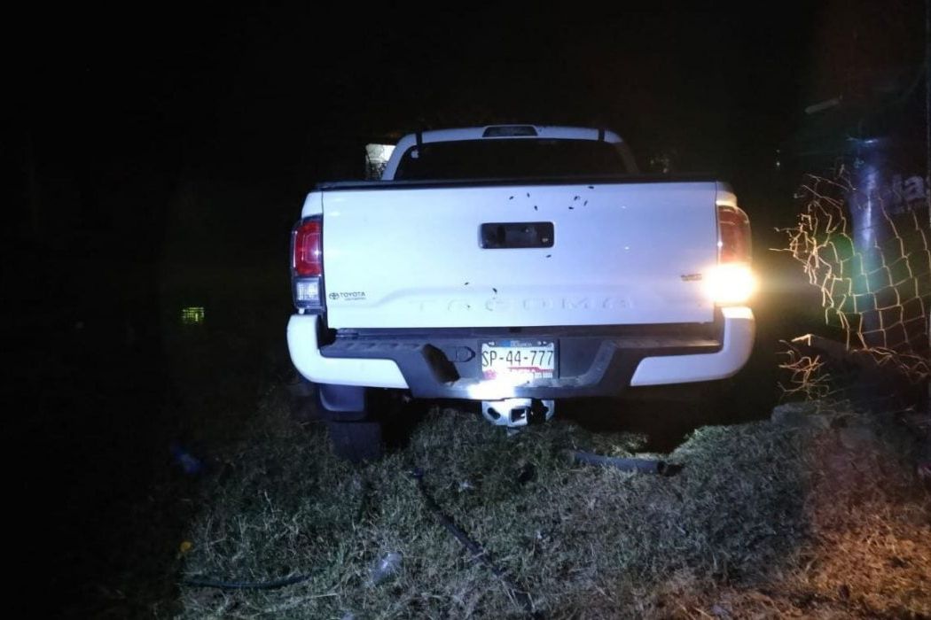 La camioneta de la marca Toyota, tipo Tacoma, de color blanca, estaban los cuerpos asesinados en su interior.