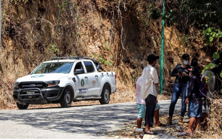 Acapulco ,Gro., 04 de marzo del 2021.- El hallazgo se realizó alrededor de las 16:00 horas en un camino de terracería adjunto a la vía alterna de Costera Vieja y avenida México, en la parte alta del plantel 02 del Colegio de Bachilleres e inmediaciones del colegio privado Montessori.