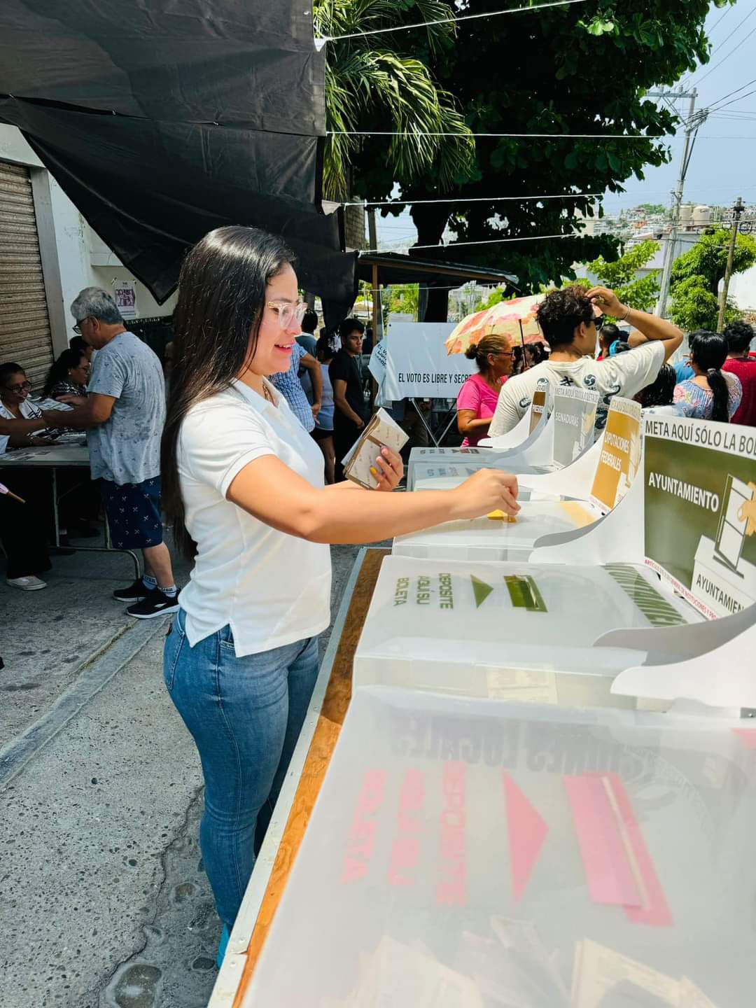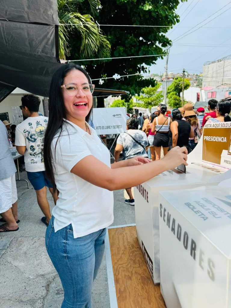 Acapulco, Gro., a 02 de junio de 2024.- La Presidenta de la Junta se Coordinación Política del Congreso del Estado de Guerrero, Citlali Calixto Jiménez sufragio su voto esta mañana.