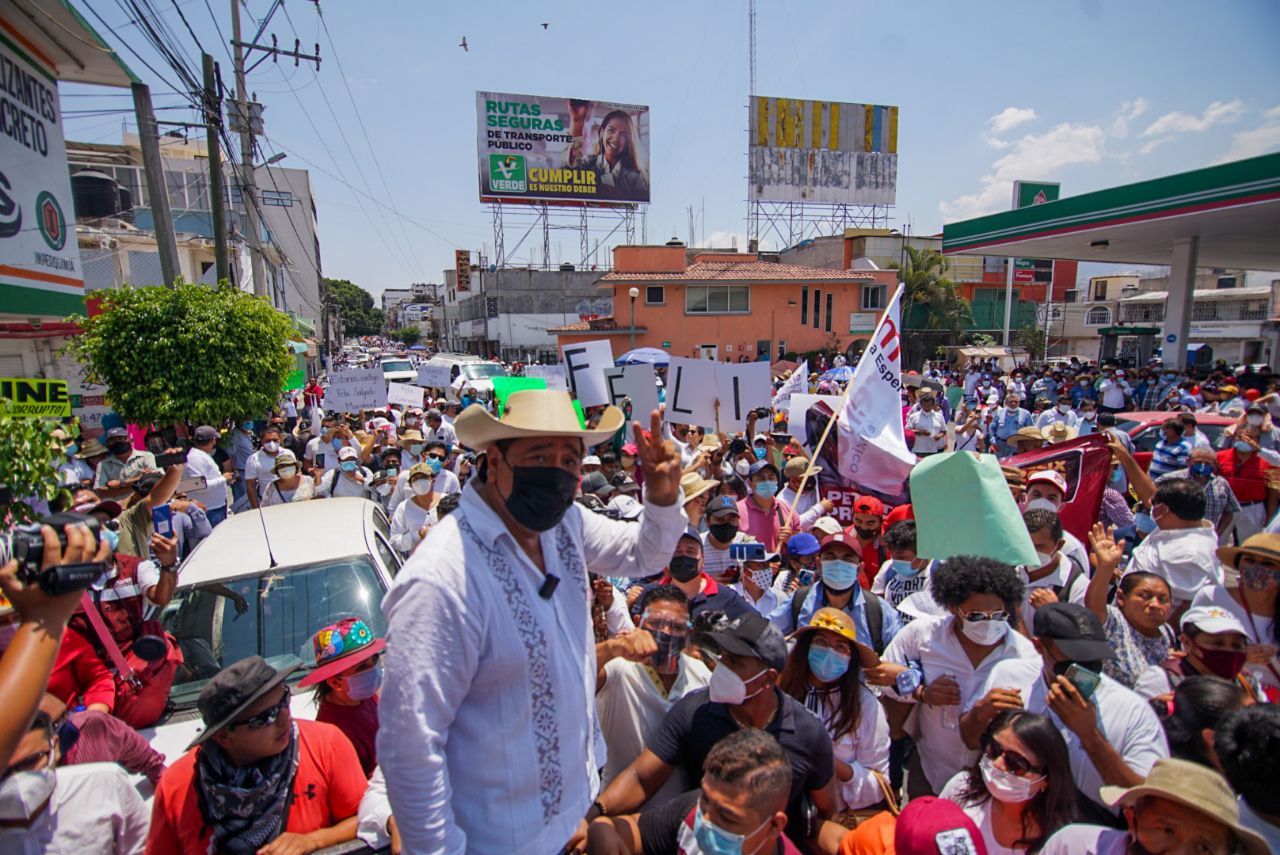 Félix Salgado inició su mensaje agradeciendo el cariño y respaldo de la gente, que por amor y convicción, acudió al llamado de la lucha social, exclamando a una sola voz, “INE entiende, el pueblo no se vende”.