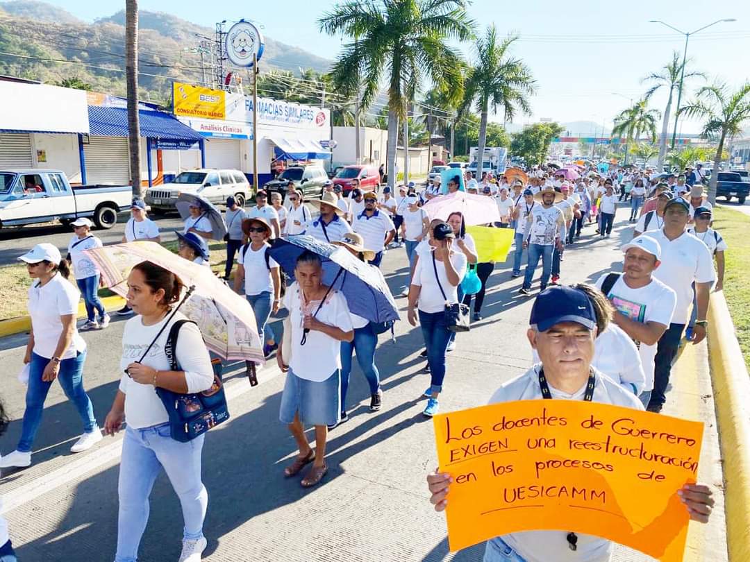 Zihuatanejo, Gro; 20 de febrero de 2024.-Para exigir respeto a sus derechos humanos y laborales, este martes, maestros de la materia de educación física de cuatro municipios de la Costa Grande, marcharon por las calles principales de esta ciudad costeña.