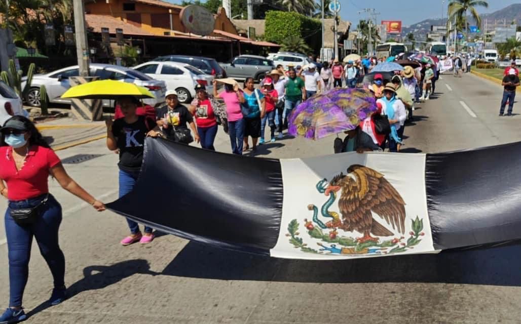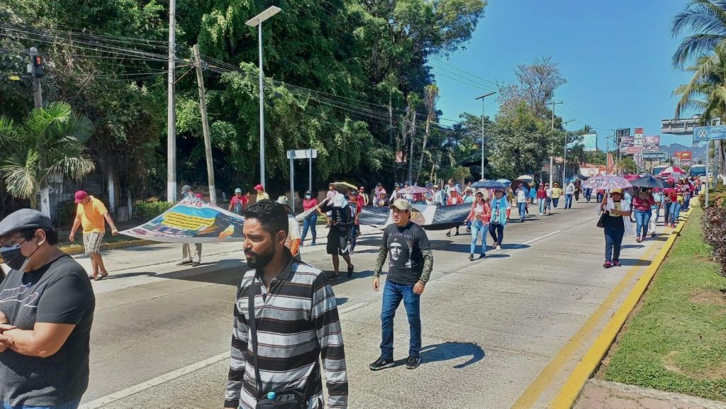 Los docentes marcharon en dirección al aeropuerto Internacional Acapulco por lo que se registró un lento avance vehicular provocando congestionamiento y tránsito vehicular en la zona.