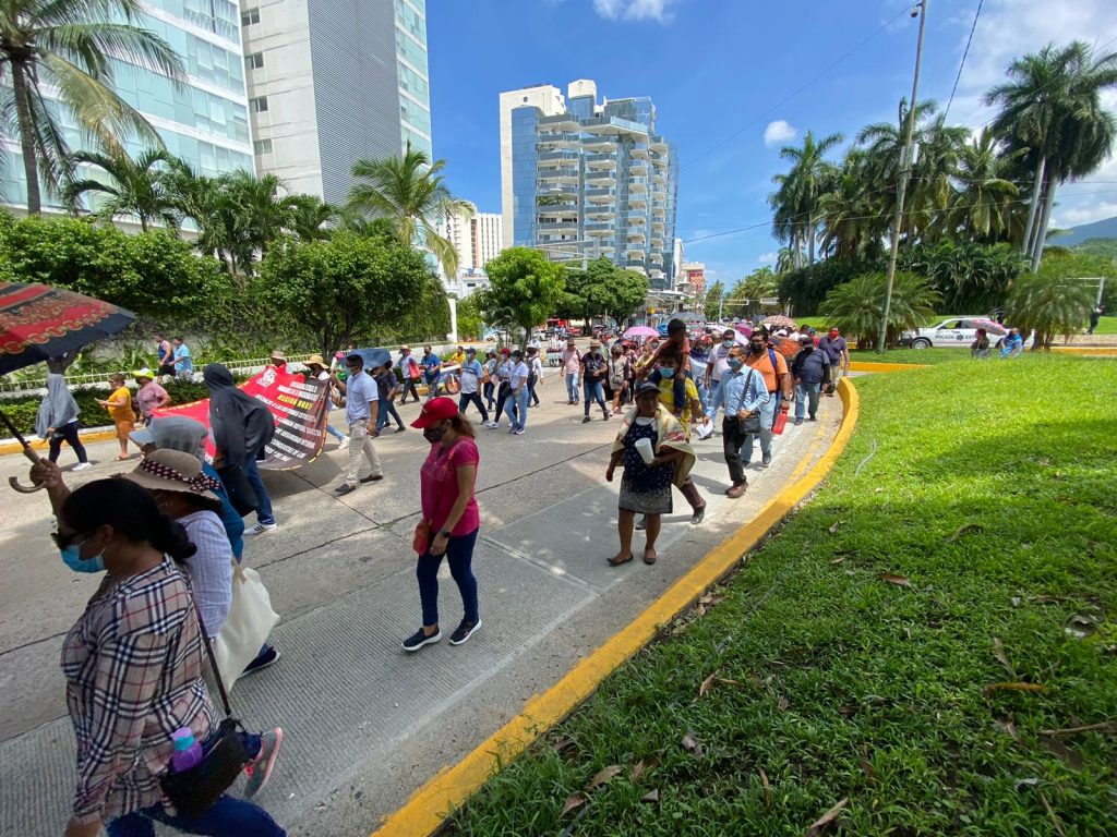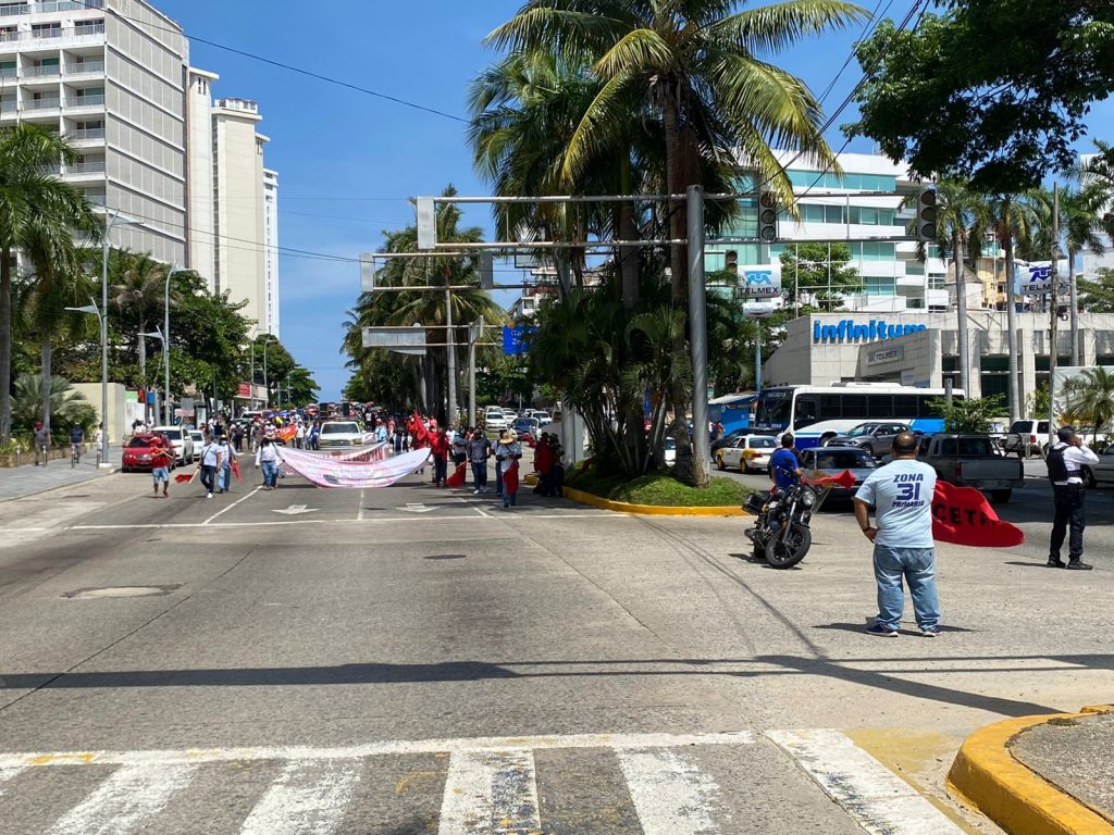 El grupo de 300 docentes disidentes arribaron de la región Costa Grande y del puerto de Acapulco para tener una reunión y una jornada de asambleas informativas donde acordaron marchar de la Diana Cazadora a la Base Naval.