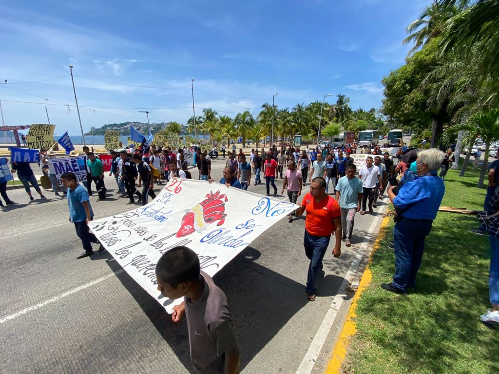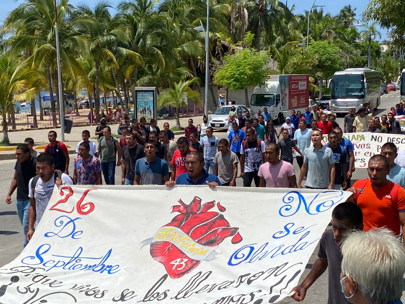“Porque vivos se los llevaron, vivos los queremos”, son las consignas que lanzan en su movilización, donde insisten, en voz de un orador a través de un megáfono que las autoridades castiguen a los culpables y detengan a todos los que participaron en la desaparición.
