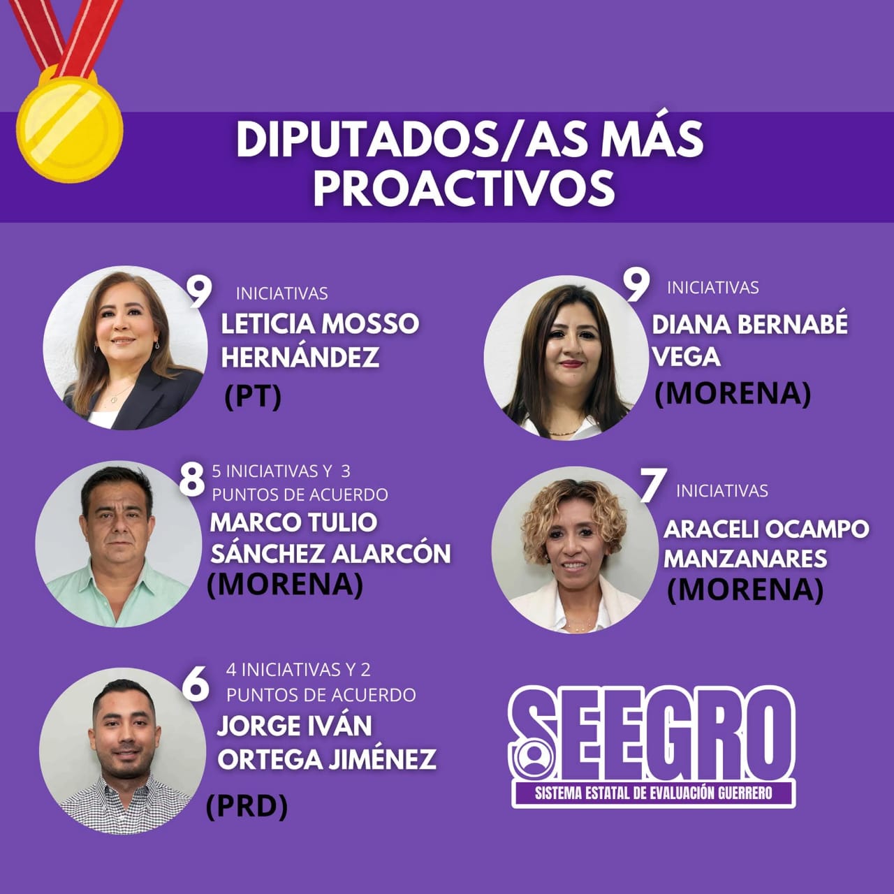 La SEEGRO de a conocer de forma periódicamente los resultados cuantitativos de productividad y desempeño de los representantes populares, donde Sánchez Alarcón destaca por haber presentado iniciativas trascendentales como la nueva Ley de Movilidad y Seguridad vial y la nueva Ley para regular el uso de las Tecnologías para la Seguridad Pública. Además realizó el exhorto a todos los municipios de Guerrero para que actualicen sus planes de desarrollo urbano.