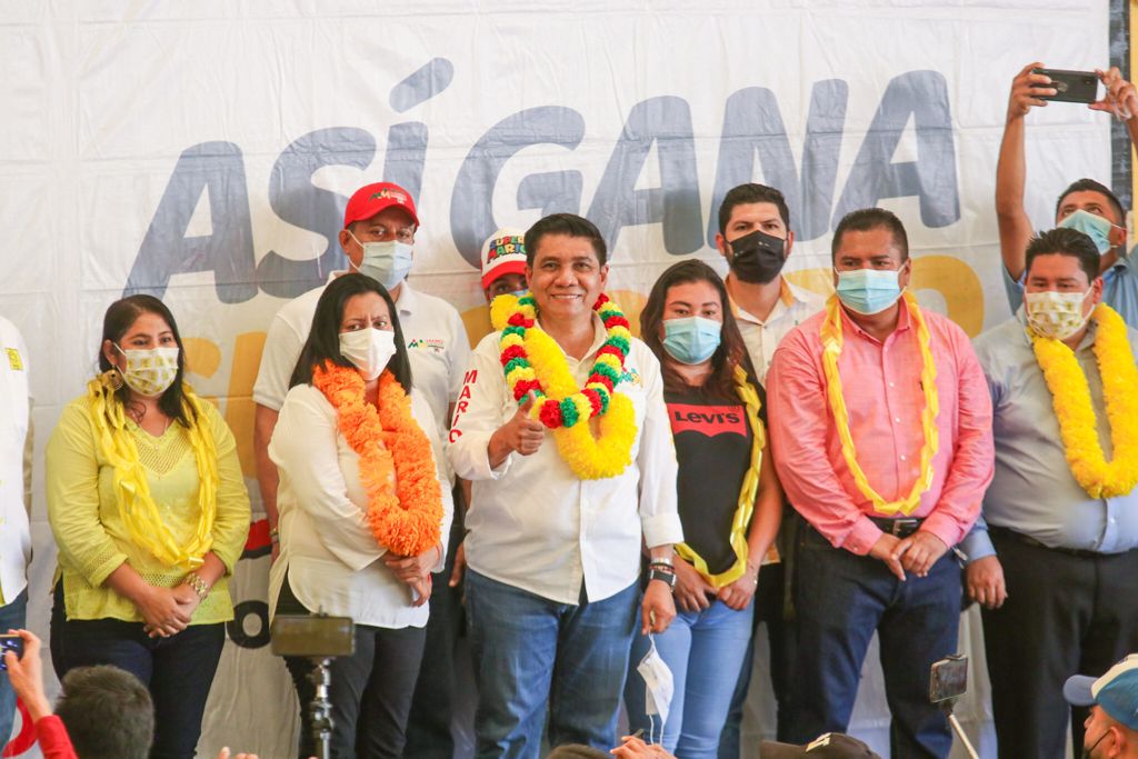 En Tierra Colorada, acompañado del candidato del PRD a la alcaldía de Juan R. Escudero, Israel Hernández Espinoza, recibió el respaldo del coordinador regional de MC en Costa Chica Noé Acevedo Flores y la candidata de MC a la alcaldía municipal Leylanni Yatzel de la Cruz Hipólito.