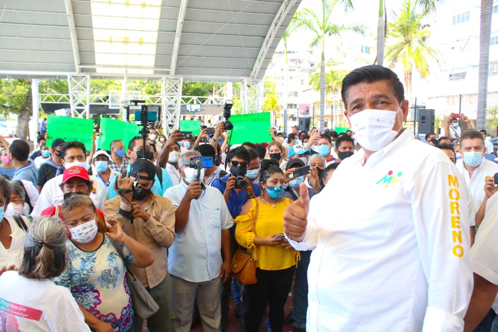 Acapulco, Gro., 28 mayo 21.- Mario Moreno Arcos, candidato de la alianza PRI-PRD fue “cobijado” por trabajadores de la Comisión de Alcantarillado y Agua Potable de Acapulco (CAPAMA) de este puerto, los que le expresaron su respaldo al proyecto de gobierno que enarbola, seguros de que habrá de cumplirle a la ciudadanía cuando sea el gobernador de Guerrero.