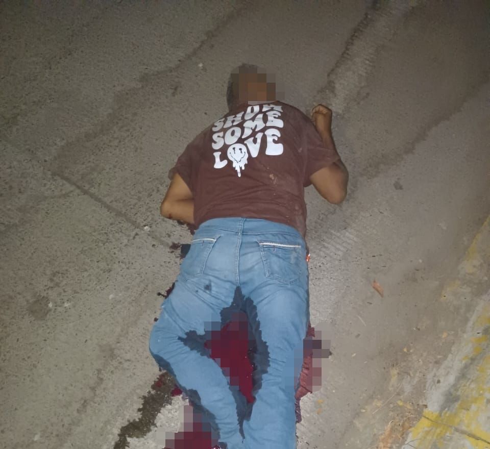 Al lugar arribaron Policías Estatales y Ministeriales quienes confirmaron el hecho y localizaron a un hombre tendido boca abajo con disparos en el cuerpo; vestía un pantalón de mezclilla azul y playera color vino y tenis negros.