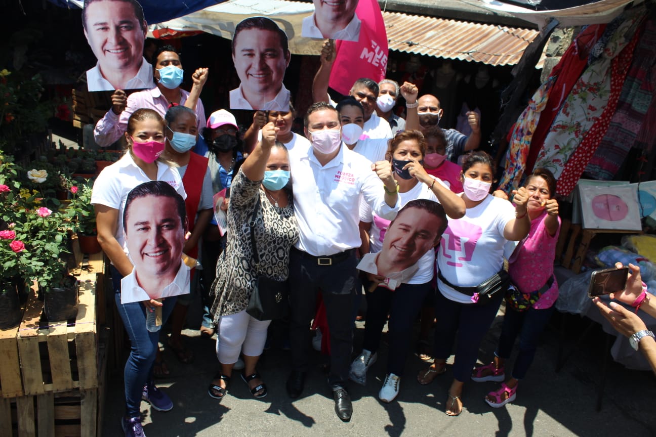 *Recibe el candidato de Fuerza por México esta mañana el respaldo de locatarios del mercado de la colonia 20 de noviembre.