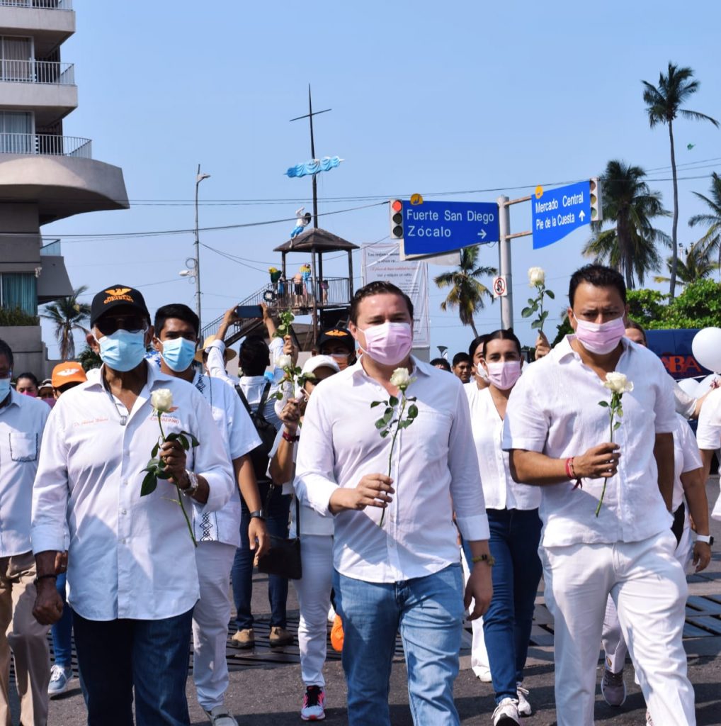 Acapulco, Gro. A 29 de mayo de 2021.- Tras el atentado que sufriera el pasado miércoles, el candidato a la presidencia municipal de Acapulco del partido Fuerza por México, José Alberto “Güero” Alonso, el día de hoy encabezó una marcha pacífica con el objetivo de exigirle al gobierno que regrese la paz y la tranquilidad a las calles de Acapulco.