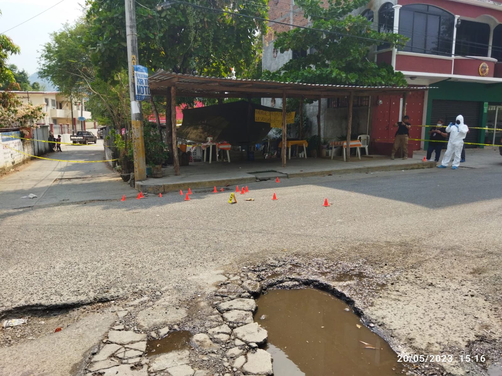 Al lugar del ataque arribaron Policías Estatales y Ministeriales quienes confirmaron el hecho y acordonaron la zona, para realizar las diligencias de ley y se informó que fueron hallados alrededor de 10 casquillos percutidos.