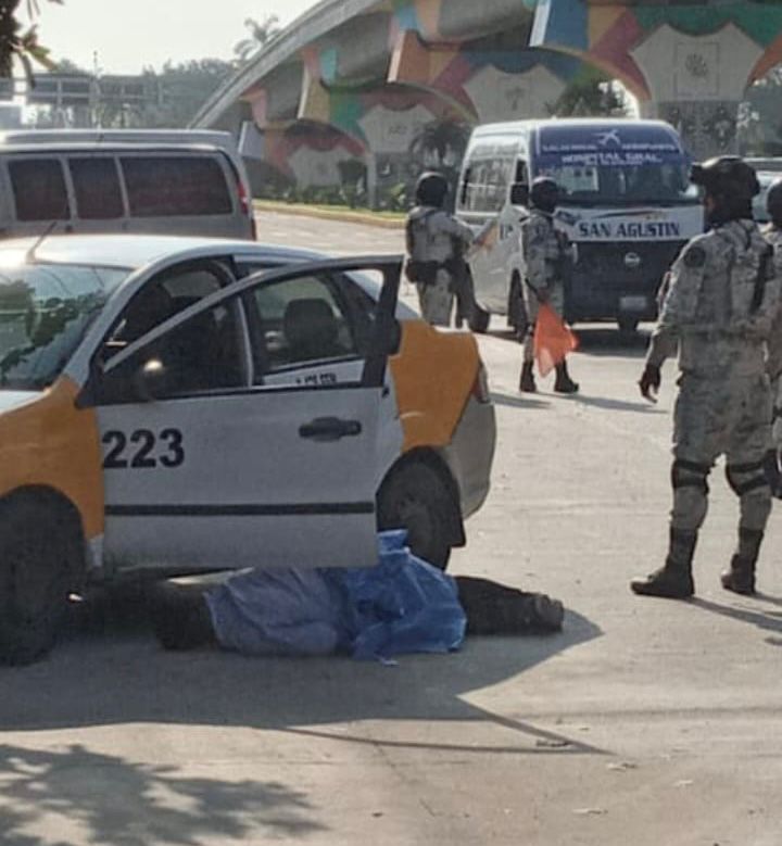 Luego del reporte de una persona tendida en la calle, arribaron efectivos de la Guardia Nacional Policías Ministeriales quienes encontraron a un taxista tendido en el pavimento a un costado de un taxi colectivo amarillo con blanco.