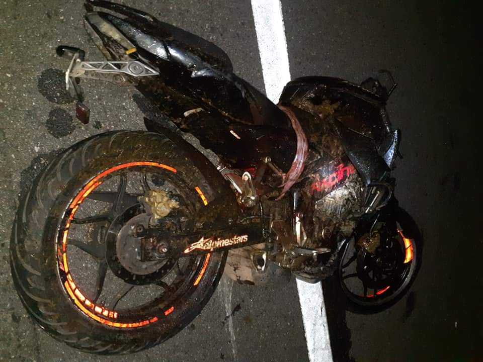 Los hoy occisos viajaban en una motocicleta negra de la marca Itálika, misma que quedó a orilla de la vía con el frente destrozado, y a pocos metros un caballo colorado muerto por expulsión de vísceras.