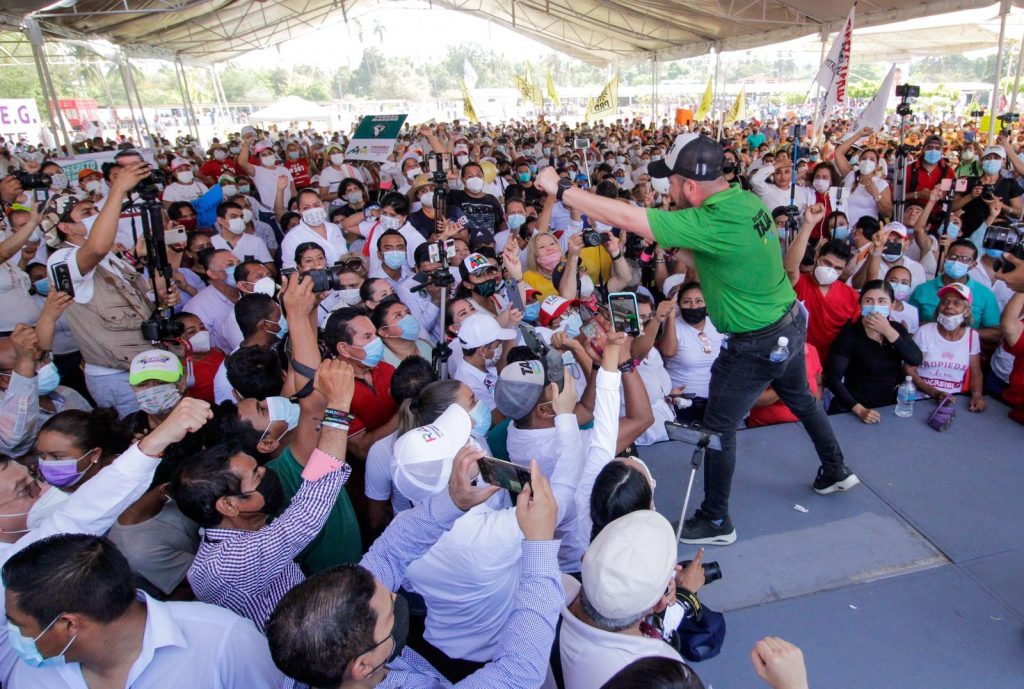 El primer cierre se llevó a cabo en el distrito 7 en Tres Palos donde simpatizantes y ciudadanos se dieron cita desde muy temprano para arropar a los candidatos y refrendarles su confianza para llevarlos al triunfo el próximo 6 de junio.