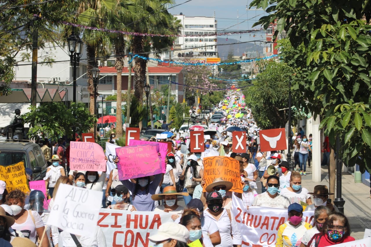Los contingentes mostraban también en pancartas su origen: de Zihuatanejo, de San Marcos, de Ometepec, de Acapulco, Tlacotepec, de La Montaña, de Juan R. Escudero, de Iguala, Tierra Caliente, en esta marcha de carácter estatal que, sin candidato, llenó las calles.
