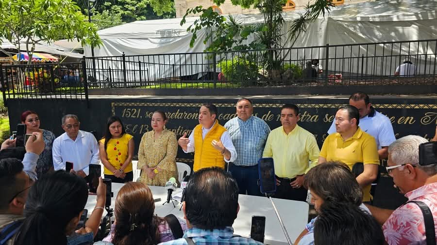 En conferencia de prensa realizada en la plaza Primer Congreso de Anáhuac, el dirigente estatal del PRD, Evodio Velázquez Aguirre, abordó dos temas centrales: la militarización de la Guardia Nacional y lo que diversos sectores han llamado la “Ley Censura”.