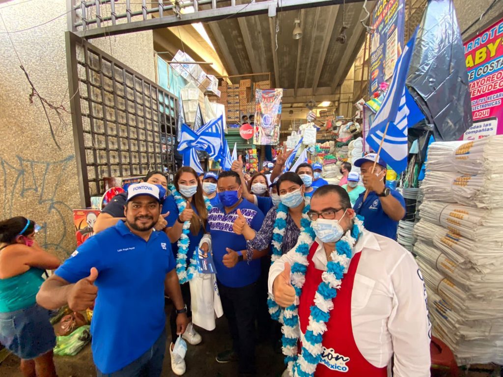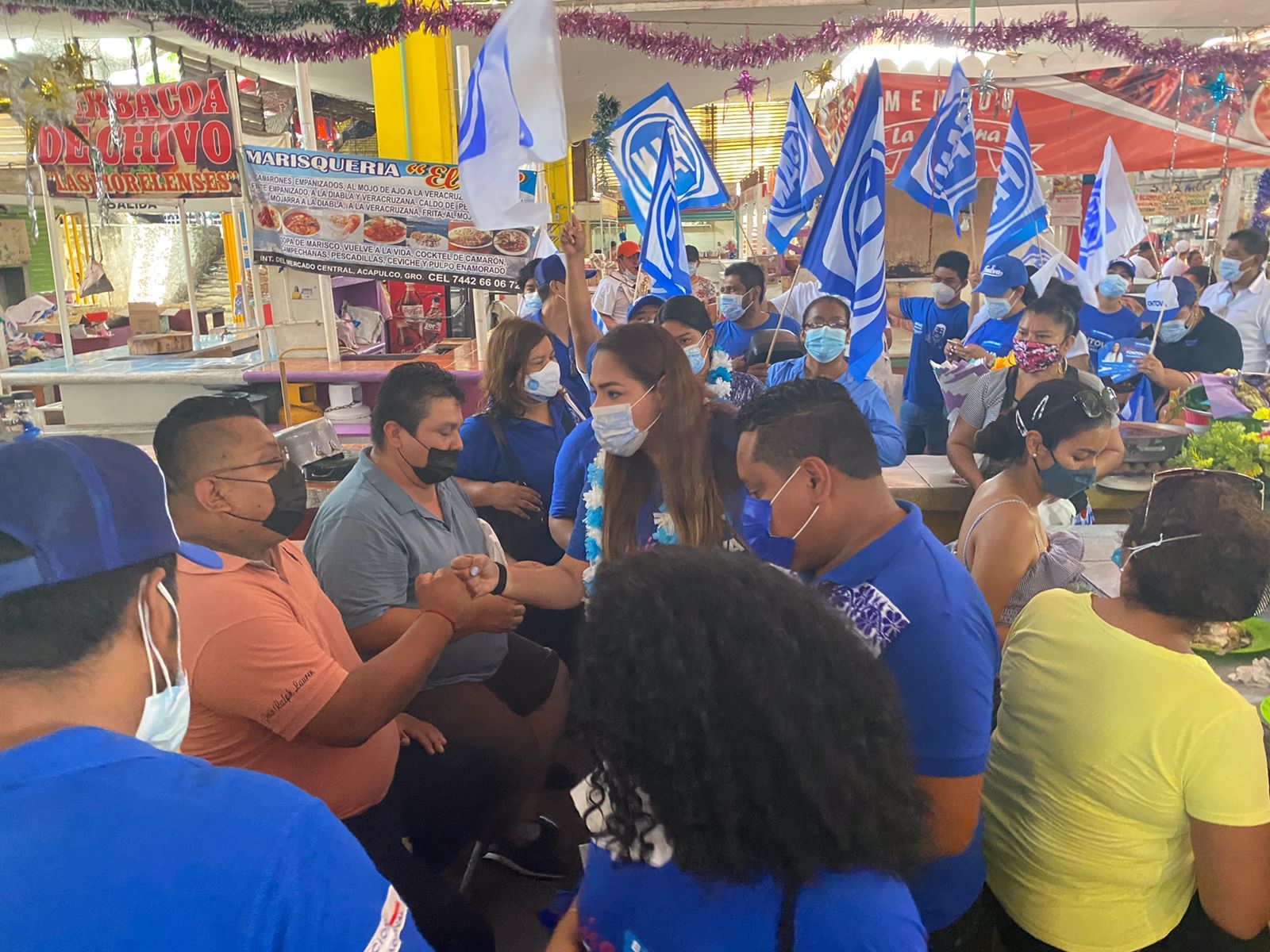 Acapulco, Gro., a 28 de Mayo de 2021.- La candidata a la presidencia municipal de Acapulco por el Partido Acción Nacional, Luisa Fontova, recorrió junto a candidatas y candidatos del PAN, el mercado central, en donde saludó a locatarios y comerciantes y escuchó de primera mano sus propuestas y necesidades.