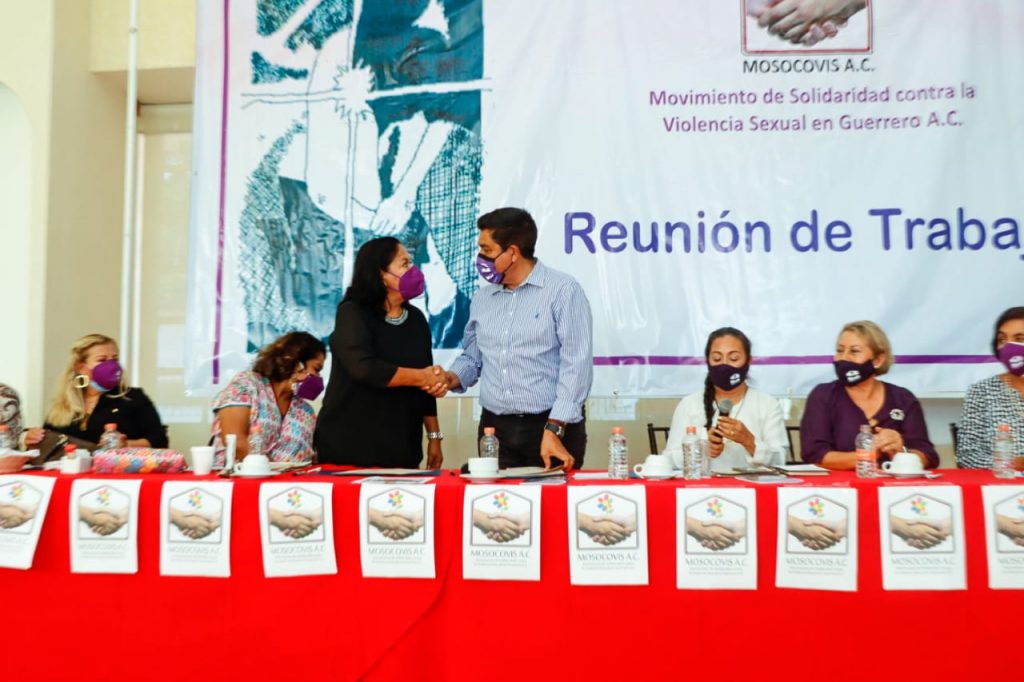 Chilpancingo de los Bravo, Gro., 4 de mayo de 2021.- Como una muestra del respeto e interés para con las mujeres de Guerrero, el candidato de la alianza PRI-PRD Mario Moreno Arcos acudió como invitado al encuentro con las líderes del Movimiento Social Contra la Violencia Sexual (MOSOCOVIS) A.C, donde reiteró que “habrán de encontrar el apoyo, respaldo, la solidaridad pero sobre todo el enorme compromiso de dar resultados en materia de protección a las mujeres” en el gobierno que encabezará, les dijo.