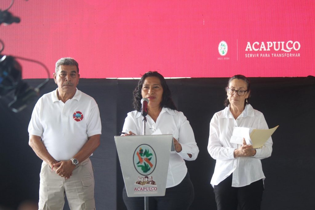 Acapulco, Gro., a 30 de mayo de 2022.- La presidente municipal del puerto Abelina López Rodríguez realizó declaraciones ante los medios sobre el desasolve de aguas residuales y las descargas que se han realizado en la bahía en algunos casos como playa Icacos durante el pasado fin de semana.