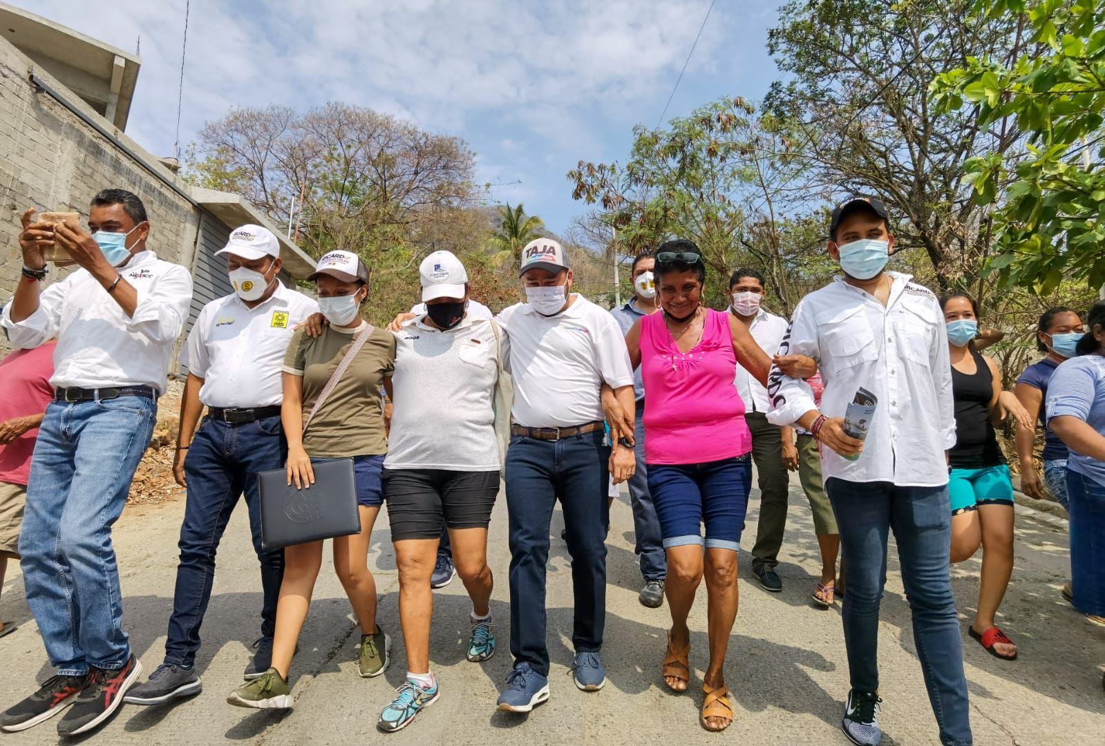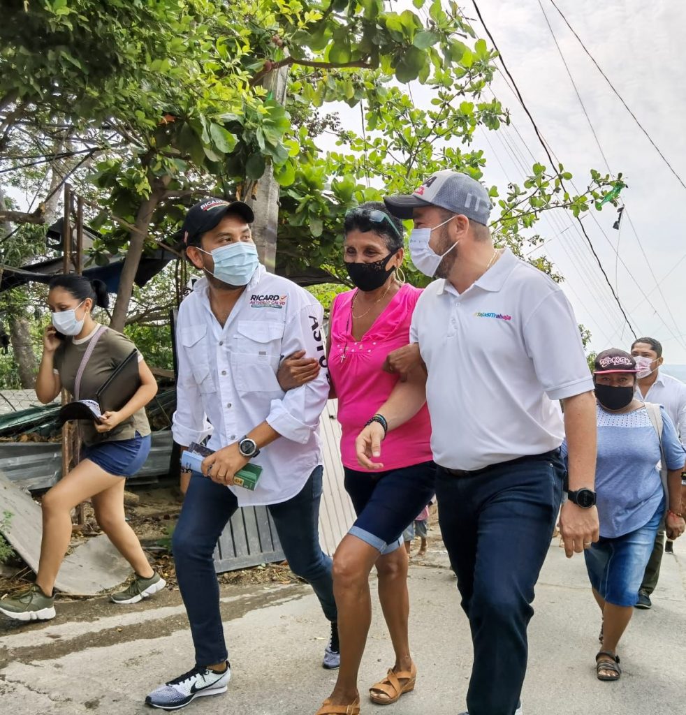 Acapulco, Gro., a 12 de mayo 2021.- Luego de realizar un recorrido a pie por calles de las colonias Nuevo Puerto Marqués, Alborada y Miramar, los candidatos a la diputación local por el distrito 7 de la coalición “Va por Guerrero”, Ricardo Astudillo Calvo y a presidente municipal de Acapulco, Ricardo Taja Ramírez, ratificaron su compromiso de impulsar acciones que hagan más eficientes los servicios públicos.