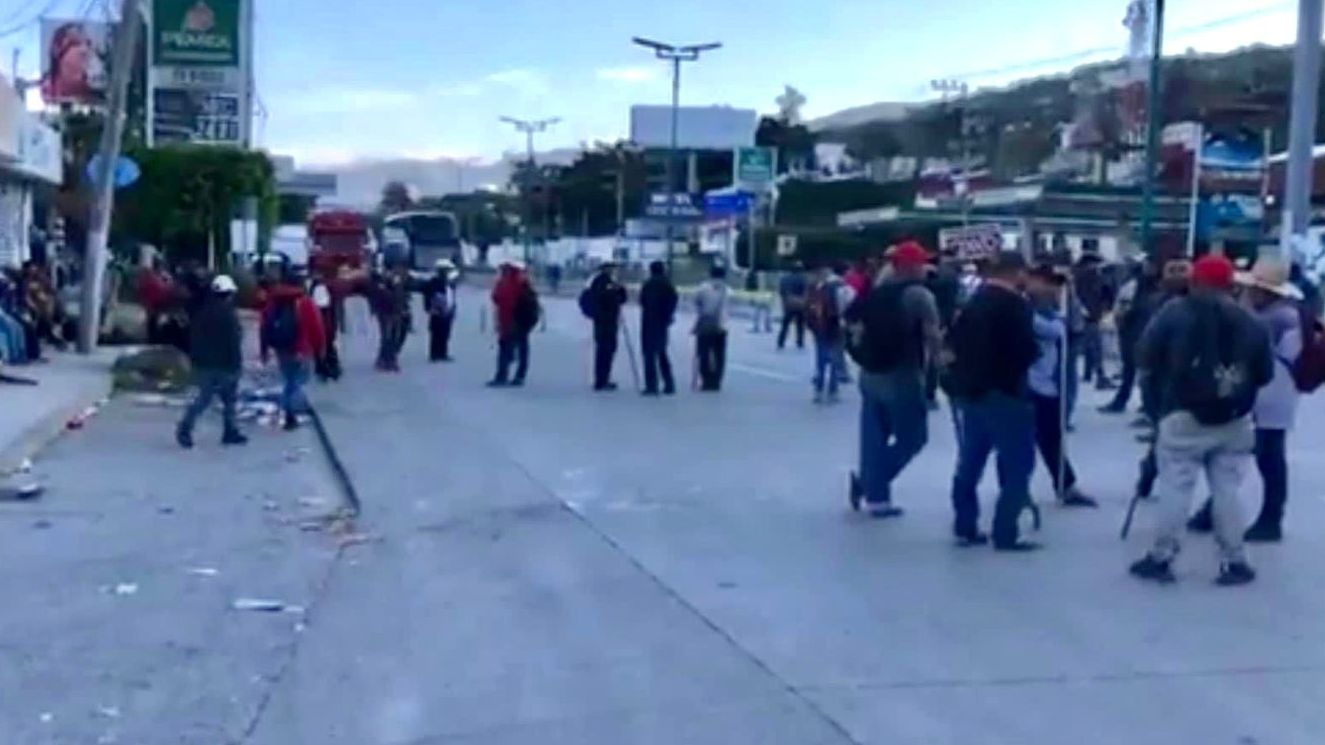 En el lugar, se puede observar también el camión blindado tipo “Rhino” perteneciente a la Secretaria de Seguridad Pública Estatal y también, llevan a los 11 servidores públicos que se encuentran retenidos desde ayer.