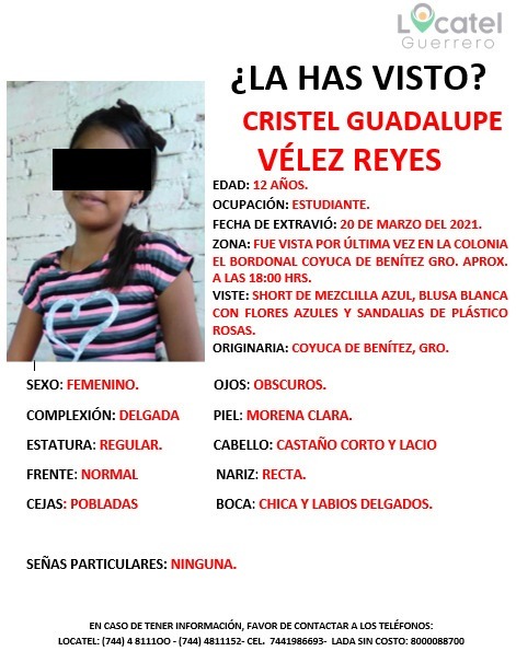 Al presentarse al lugar señalado, encontraron a un joven de 13 años acompañado por una joven de 12, quien dijo ser su novia y aceptó ser la niña reportada como extraviada en la comunidad de El Bordonal, municipio de Coyuca de Benítez.