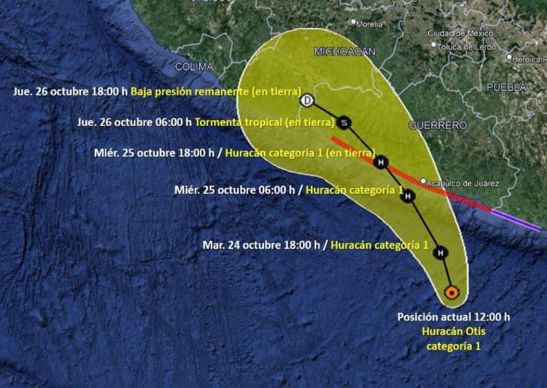 De acuerdo con el Servicio Meteorológico Nacional, “Otis” continuará fortaleciéndose en las próximas horas y podría impactar en las costas de Guerrero durante el transcurso del miércoles, por lo que el gobierno del estado recomienda extremar las medidas de precaución necesarias, sobre todo en zonas consideradas como de alto riesgo.