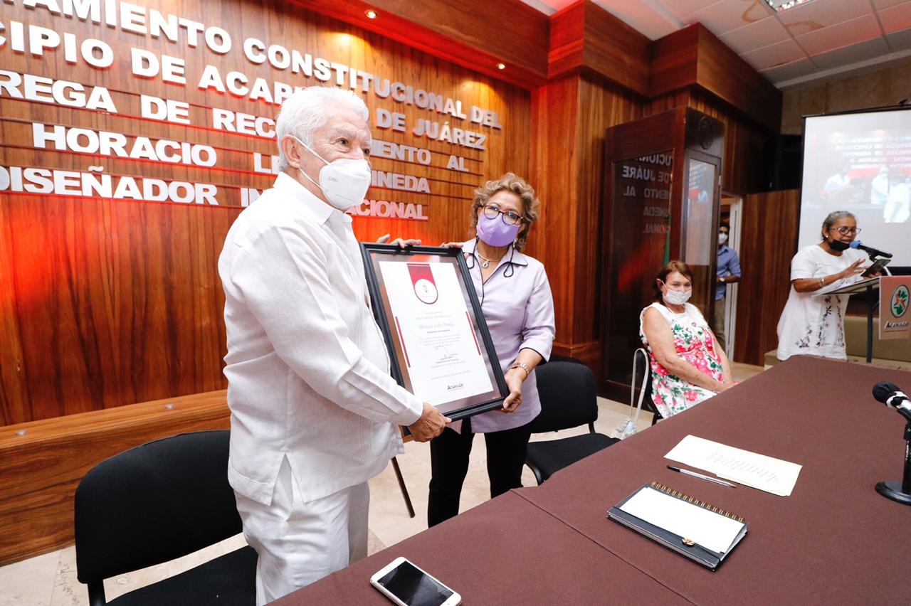 Acapulco, Gro., 26 de marzo de 2021.- Por ser un entusiasta diseñador que logró traspasar fronteras y posicionar a Acapulco y a México a nivel internacional, además de ser un benefactor del Ejército de Salvación que ayuda a niños y jóvenes a un desarrollo social, el Gobierno Municipal entregó un reconocimiento al modista Horacio León Pineda.