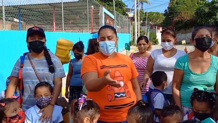 Acapulco,Gro., a 04 de octubre del 2022.-Padres de familia y personal educativo del jardín de niños “Esperanza Jaimes Viuda de Castrejón” ubicado en la colonia Postal protestaron a las afueras del plantel educativo para exigir a la Comisión de Agua Potable y Alcantarillado del Municipio de Acapulco (CAPAMA) la reparación del drenaje en dicha colonia.