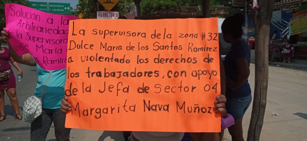 Se informó que los inconformes exigen la destitución de la supervisora Dulce María de los Santos al asegurar que no ha respetado sus derechos laborales y los maltrata de manera desmedida.