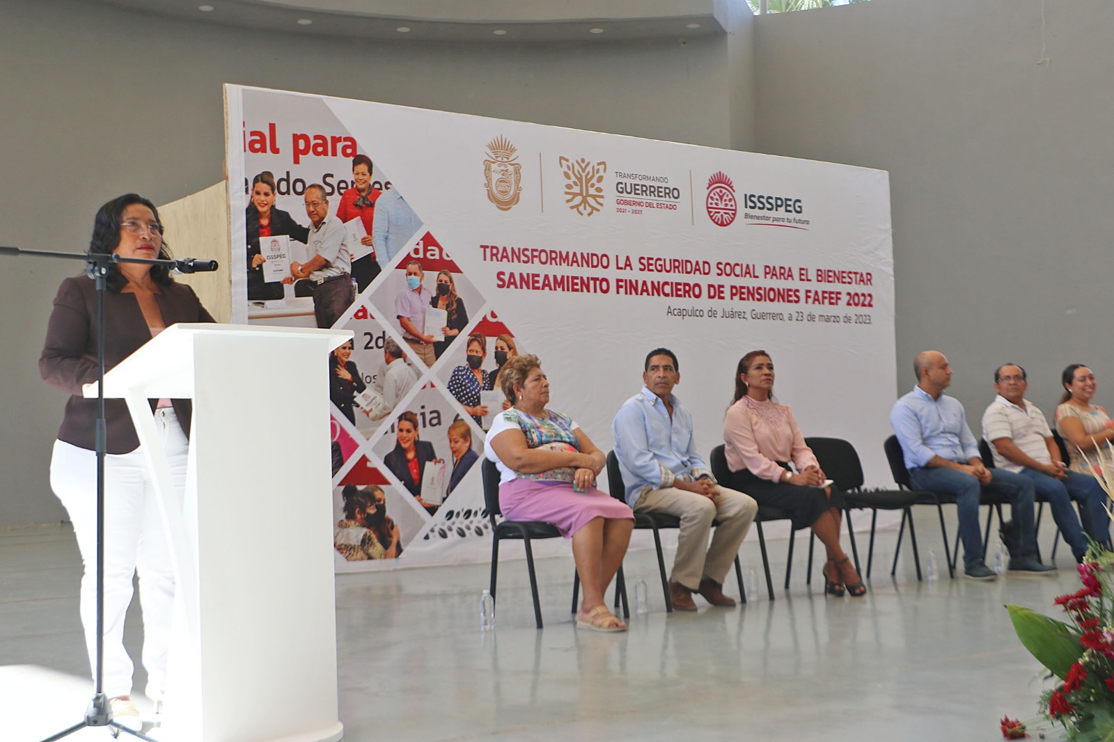 Acapulco, Gro., 23 de marzo de 2023.– Al participar en la entrega “Transformando la Seguridad Social para el Bienestar”, saneamiento financiero de pensiones FAFEF 2012”, la presidenta municipal, Abelina López Rodríguez, afirmó que su gobierno ha realizado esfuerzos para cumplir puntualmente con las aportaciones al Instituto de Seguridad Social de los Servidores Públicos del Estado de Guerrero (ISSSPEG).