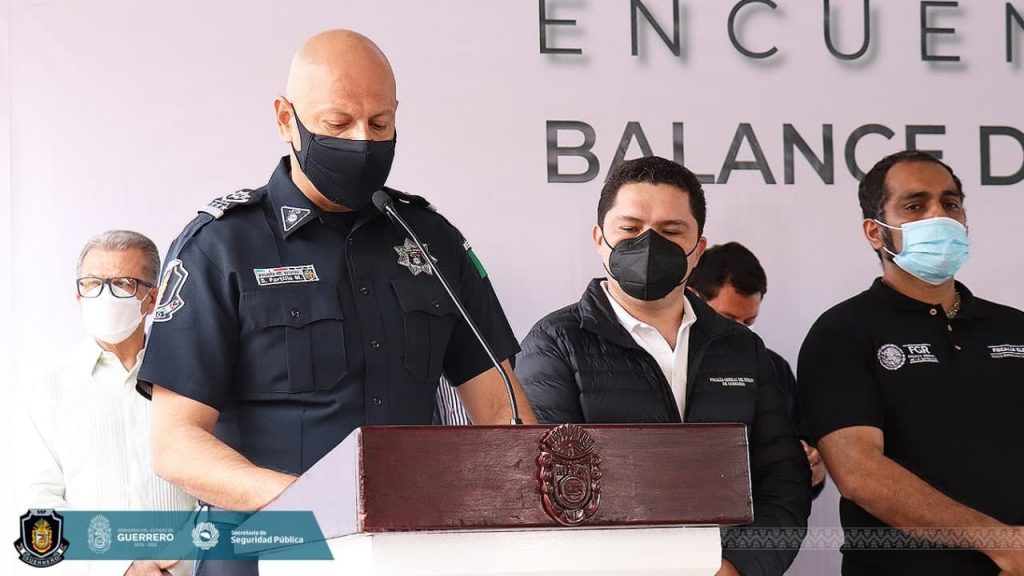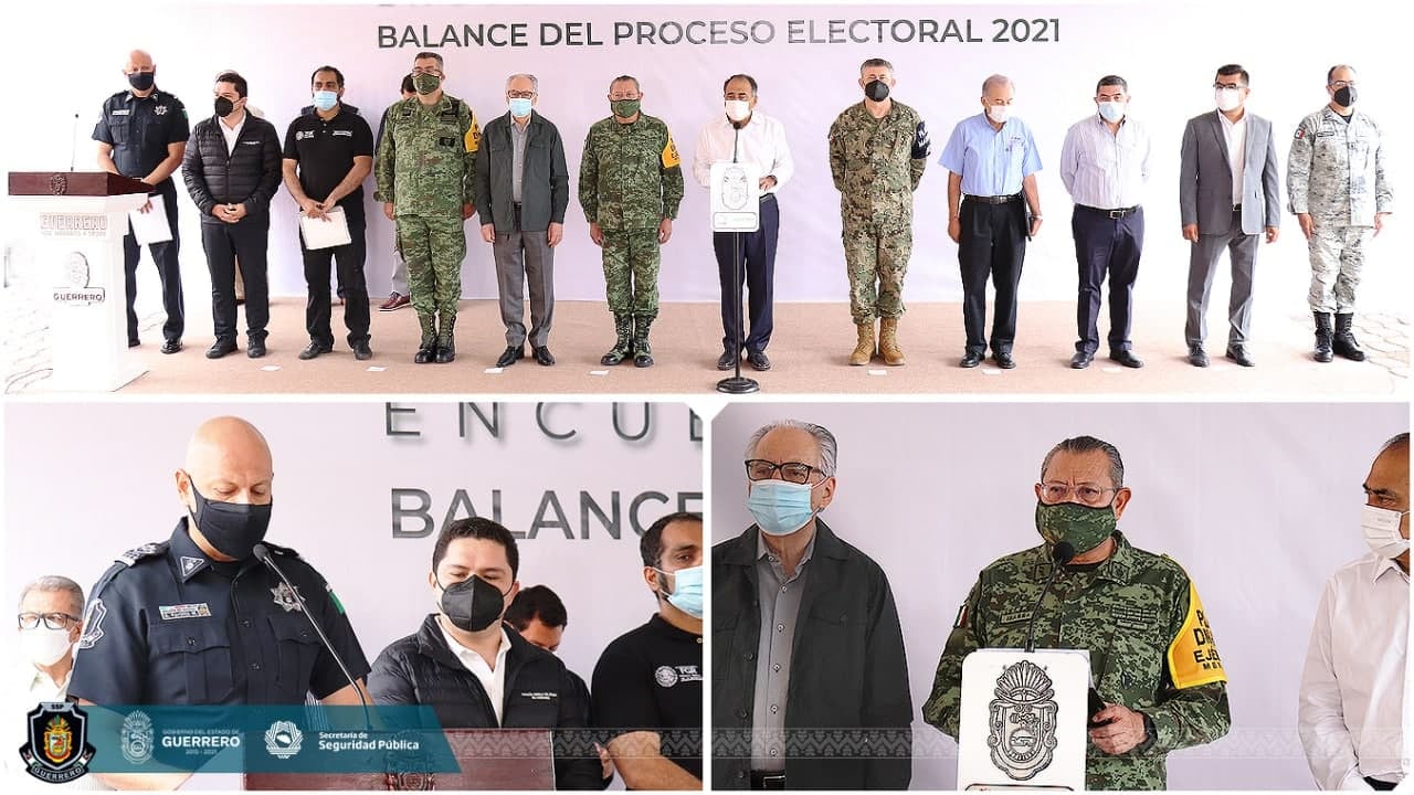 Chilpancingo, Gro., a 03 de junio del 2021.- El Secretario de Seguridad Pública Estatal, David Portillo Menchaca participó en el encuentro con medios que encabezó el Gobernador, Héctor Astudillo Flores para informar del balance del Proceso Electoral 2021, evento en el que también participaron autoridades electorales, la Secretaría de la Defensa Nacional, Guardia Nacional y Fiscalía General del Estado.