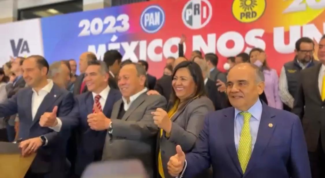 Añorve Baños, acompañó a los dirigentes nacionales del PRI, Alejandro Moreno Cárdenas, del PAN, Marco Cortes y Jesús Zambrano del PRD a hacer el anuncio oficial de la coalición.
