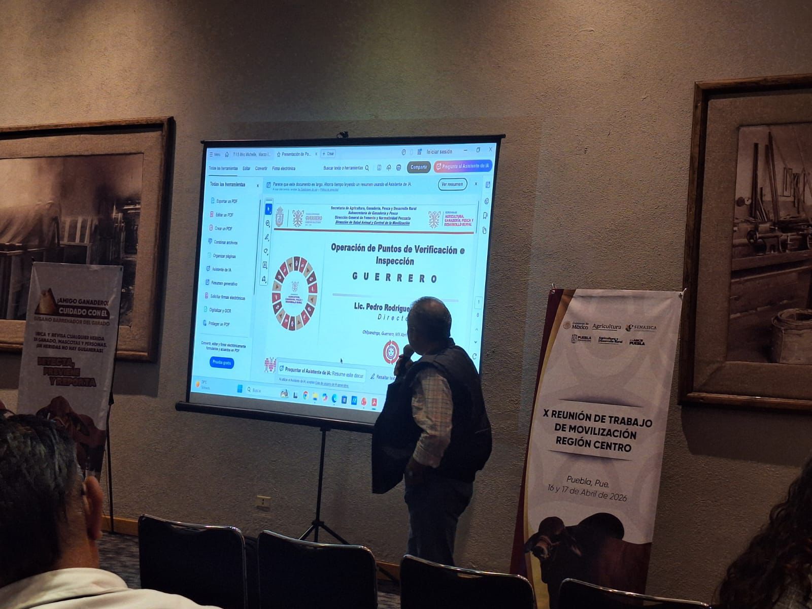 Puebla, Puebla, 21 de abril de 2026.- El director de Salud y Control de la Movilización de la Secretaría de Agricultura, Ganadería, Pesca y Desarrollo Rural (SAGADEGRO), Pedro Rodríguez Salgado, participó en la 10a Reunión de la Región Centro de Movilización, que tiene como objetivo fortalecer la coordinación técnica entre entidades en materia de sanidad e inocuidad agropecuaria.