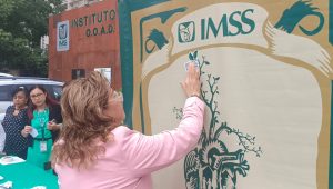 En esta importante dinámica, que se realizará del 02 al 06 de octubre, el personal escribirá en una pequeña hoja sus buenos deseos hacia el IMSS, colocándola sobre la lona impresa con el diseño creado por Lucy Ovilla, artista visual, pintora y escultora, originaria de Chiapas.