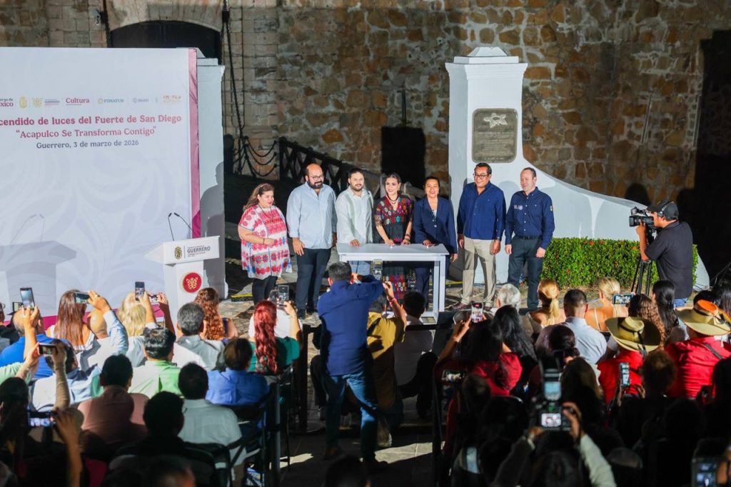 Acapulco, Gro., 3 de marzo de 2026.- “Por su crónica, trascendencia y significado, nuestro Fuerte de San Diego es indiscutible ícono del maravilloso puerto de Acapulco. Y un recordatorio de que los pueblos que conocen su historia, jamás se dejan borrar, son pueblos valientes, son pueblos resilientes”, señaló la gobernadora Evelyn Salgado Pineda durante el evento de Encendido de Luces de este lugar histórico.