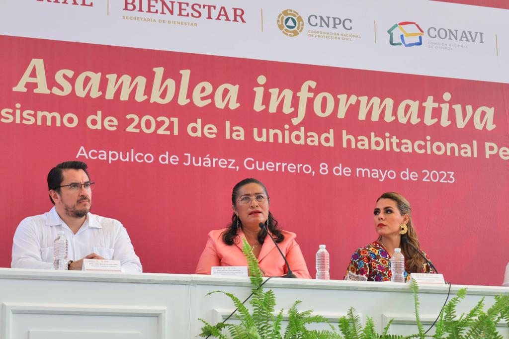 Acapulco, Gro., 08 de mayo de 2023.– Al participar en la asamblea informativa con afectados por el sismo de 2021, de la unidad habitacional Pedregal de Cantaluna, junto a la gobernadora, Evelyn Salgado Pineda, la presidenta municipal, Abelina López Rodríguez, reconoció la sensibilidad del gobierno federal al buscar solución a dicho problema y envió un saludo al presidente de la República, Andrés Manuel López Obrador.