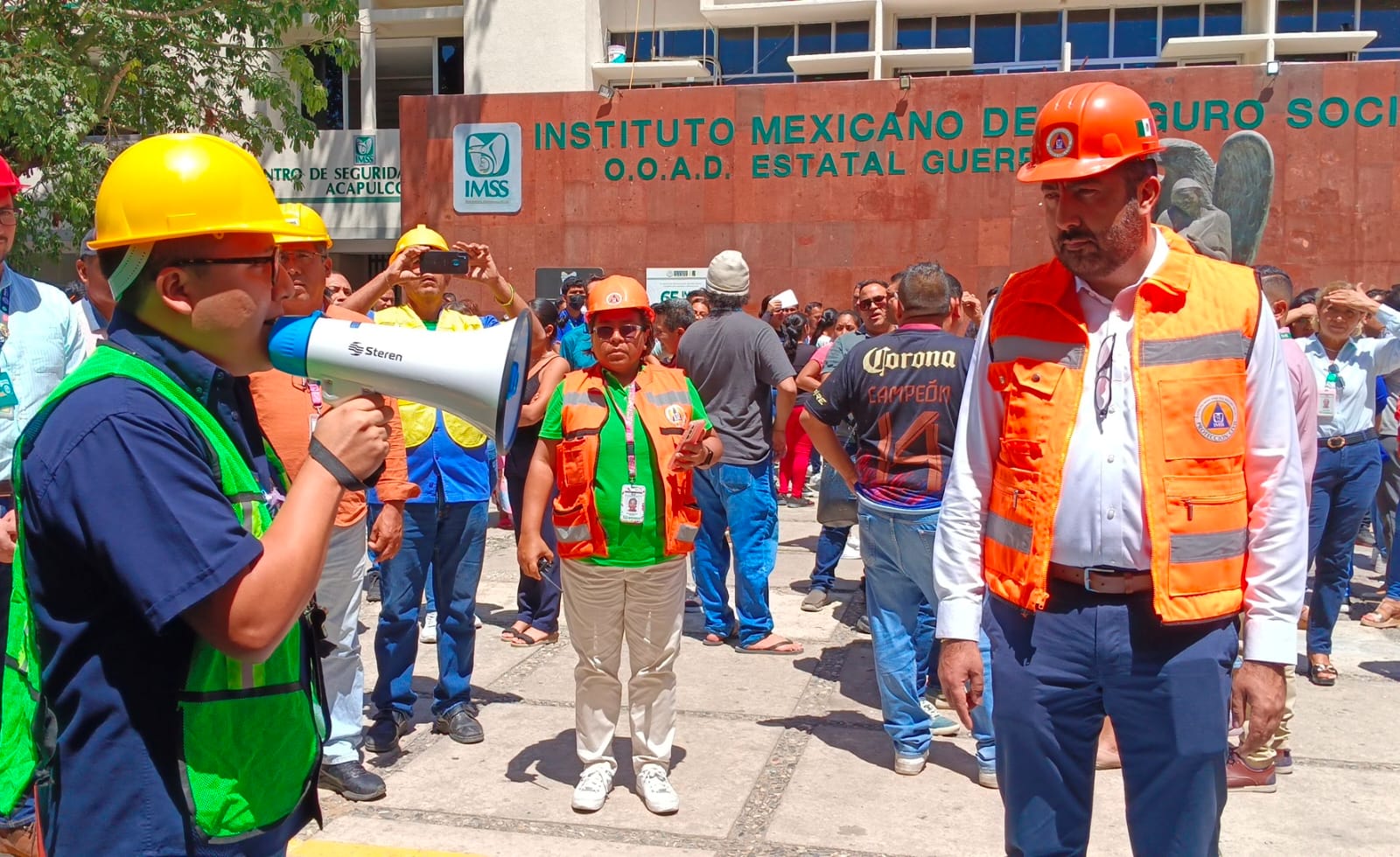 Personal y autoridades de la sede del IMSS, Centro de Seguridad Social y Subdelegación Acapulco participaron en esta importante actividad, considerando que el puerto se ubica en una zona altamente sísmica.