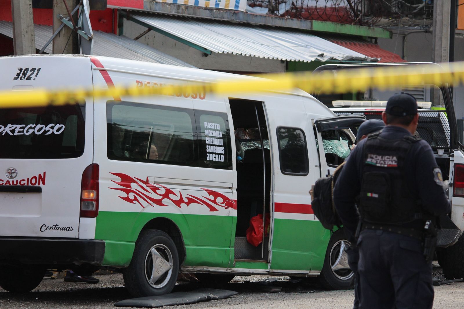 Testigos informaron que el chofer, luego recibir los disparos, perdió el control del vehículo y terminó impactándose contra una patrulla de la Policía Estatal que se encontraba estacionada y tres vehículos más que estaban estacionados en la vía.