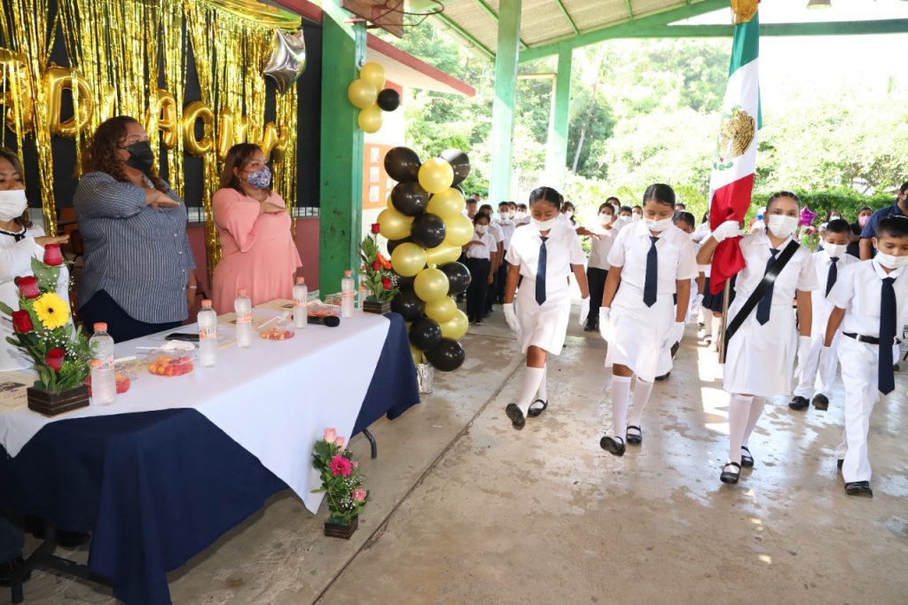Durante la ceremonia de clausura, fueron entregados los certificados a los más de 20 egresados, así como reconocimientos y diplomas a los estudiantes destacados, la secretaria de Bienestar, Leticia Lozano, les entregó un obsequio por concluir la educación primaria.