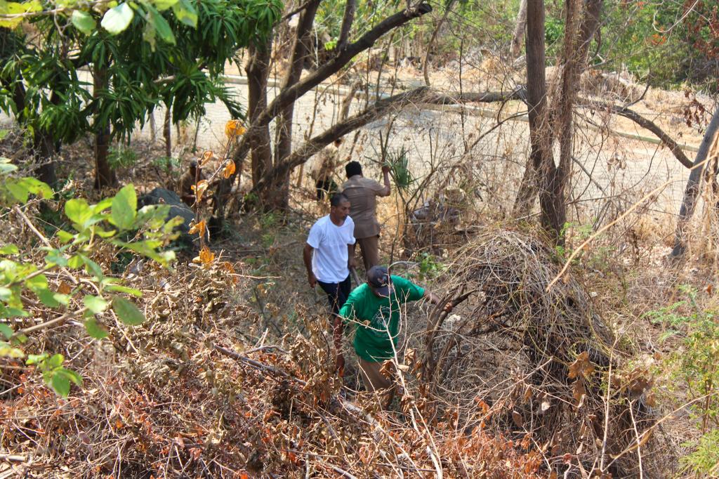 El grupo de aproximadamente 70 trabajadores acompañados con palas, picos, rastrillos y carretillas, comenzaron a retirar la maleza y pedazos de troncos que con el paso de los días, se han ido secando.