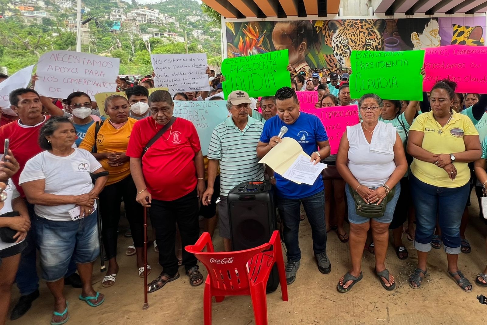 Un grupo de comerciantes y trabajadores de playa realizaron una concentración en la glorieta de Puerto Marqués para solicitar a las autoridades federales se otorguen apoyos económicos para poder solventar sus daños y afectaciones tras el paso del huracán John.