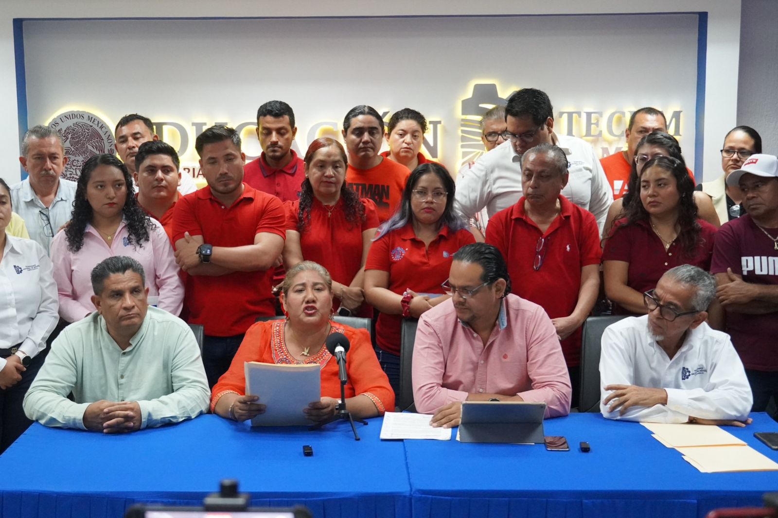 En conferencia de prensa al interior del Instituto, el profesor Iván Hernández Caballero, acompañado por el subdirector académico Jesús Tino Coleva y la jefa de departamento de Ciencias Económico Administrativas, Claudia Arias Venancio, denunciaron que existe la intención de excluir a interinos, directivos y funcionarios del proceso electoral, a pesar de que todos ellos realizan el descuento sindical de la cuota 58 de manera quincenal.