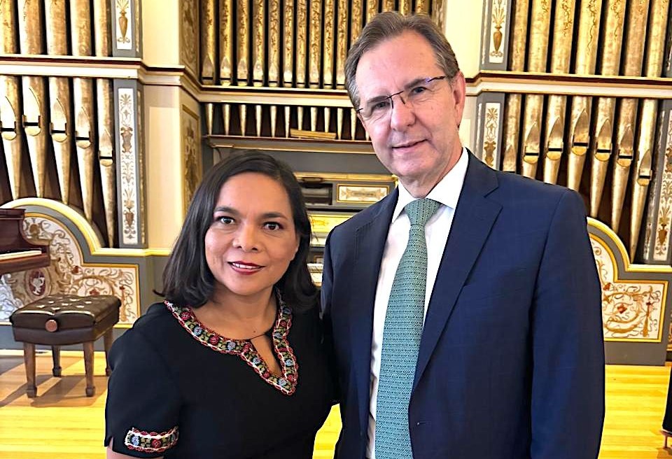 Chilpancingo, Guerrero, 9 de agosto de 2024.- La senadora electa Beatriz Mojica Morga sostuvo un encuentro con el embajador Esteban Moctezuma Barragán en Washington DC a quien planteó la conveniencia fortalecer las iniciativas de agroindustria y productos de nostalgia, para mejorar las condiciones de vida de las y los guerrerenses, a través de las remesas.
