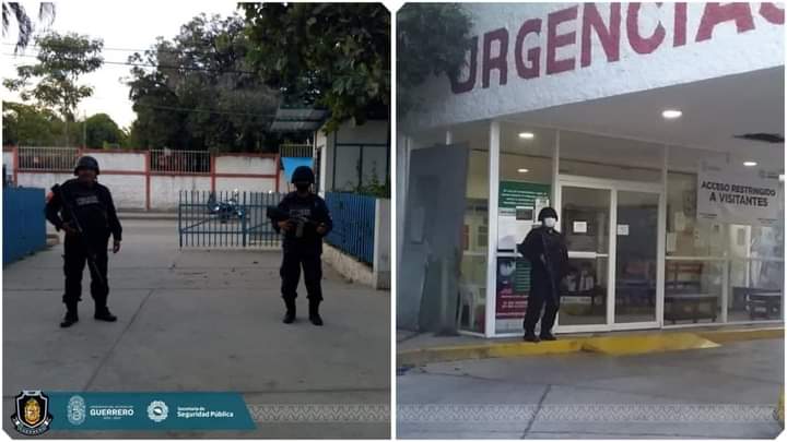 La Secretaría de Seguridad Pública del Estado a través de la Policía Estatal resguarda las inmediaciones de los hospitales “Dr. Bernardo Sepúlveda Gutiérrez” y “Dr. Juventino Rodríguez García” ubicados en Zihuatanejo de Azueta y Atoyac de Álvarez respectivamente, con la finalidad de salvaguardar la integridad de usuarios, así como del personal de salud.