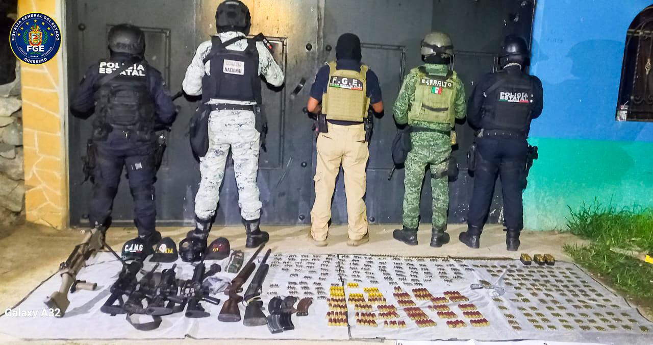 Chilpancingo, Gro. a 15 de agosto de 2024.- En operativos interinstitucionales coordinados, realizados entre el 13 y 14 de agosto del año en curso, la Fiscalía General del Estado de Guerrero, Policía Estatal, Ejército Mexicano y Guardia Nacional, aseguraron diversas armas largas, equipo táctico, más de 2,000 cartuchos útiles y recuperaron vehículos con reporte de robo en el municipio de Teloloapan.