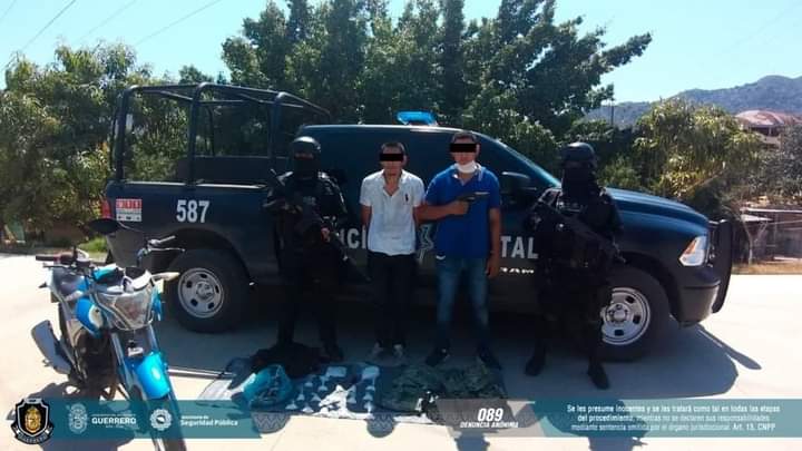 Chilpancingo, Guerrero, 24 de febrero de 2021.- Como resultado de las acciones en prevención del delito, elementos de la Policía Estatal y del Grupo Táctico de Reacción Inmediata “Centauro” detuvieron a dos personas en posesión de presunta droga, un arma de fuego, cartuchos y un vehículo en el municipio de Acapulco de Juárez.